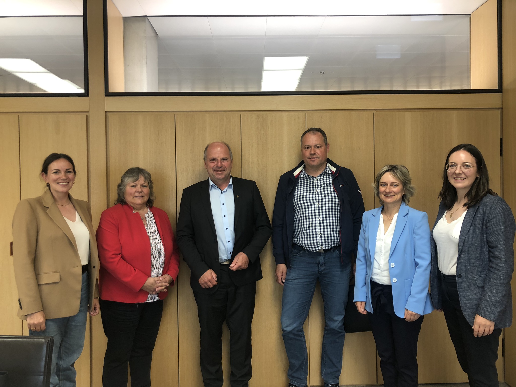 Anfang Juni besuchte ihn Linder mit ihrer Schwester, der Südhof-Covorsitzenden Caroline Hartmann, mit Sabine Preuß, Geschäftsführerin der Putenbrüterei Böcker, und mit Marcus Könninger, Vorsitzender der Württembergisch-Fränkischen Putener-zeugergemeinschaft, in den Fraktionsräumen in Stuttgart. Hahn holte Martina Braun dazu, die ebenfsalls Ausschussmitglied und zusätzlich Sprecherin für Tierschutzfragen der Grünen Landtagsfraktion ist (siehe Foto unten).